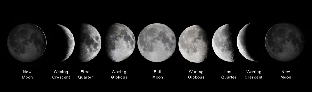 • Full Moon – Approximately two weeks after the new moon comes the full moon. The full moon is symbolic with completion. It is a time to let go and release. This can be happy or somber such as celebrating or mourning endings, completing tasks, letting go of relationships that no longer serve us, reflecting, pausing, and going within. It can be a good time to purge, clean, cleanse, and heal. The full moon will often illuminate information we did not know that has been hiding. These shadows and secrets sometimes come to the surface to have the light shone on them to be revealed to us.